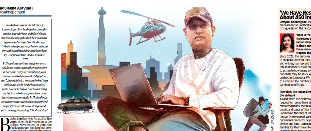 Thousands of workers are trafficked to Southeast Asia to commit cyber fraud by befriending and then swindling compatriots over Facebook and WhatsApp. Ex-serviceman Botcha Sankhar, who was forced to work in the scam compounds of Phnom Penh for six months, unravels the modus operandi of this new and terrifying form of crime and forced labour