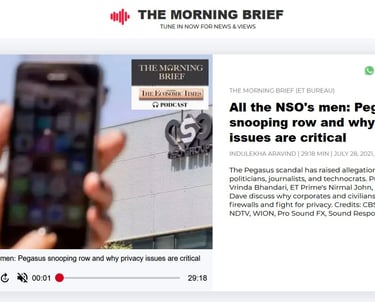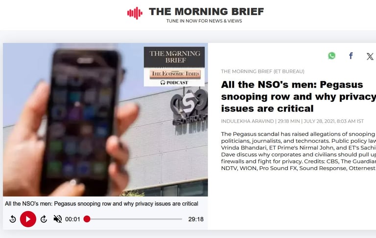 The Pegasus scandal has raised allegations of snooping on politicians, journalists, and technocrats. In this episode of The Morning Brief, I discuss the ramifications with public policy lawyer Vrinda Bhandari and colleague Nirmal John, who specialises in cyber security and cyber crime