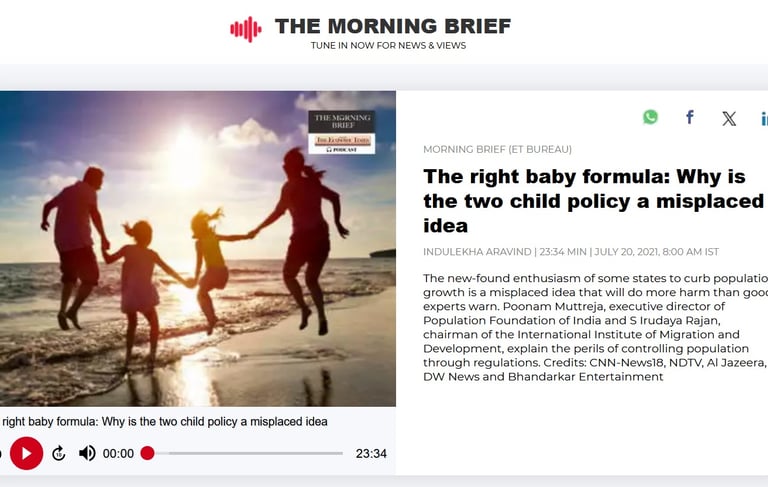 The new-found enthusiasm of some Indian states to curb population growth is a misplaced idea, experts warn. I speak with Poonam Muttreja, executive director of Population Foundation of India and S Irudaya Rajan, chairman of the International Institute of Migration and Development, about the perils of controlling population through regulations
